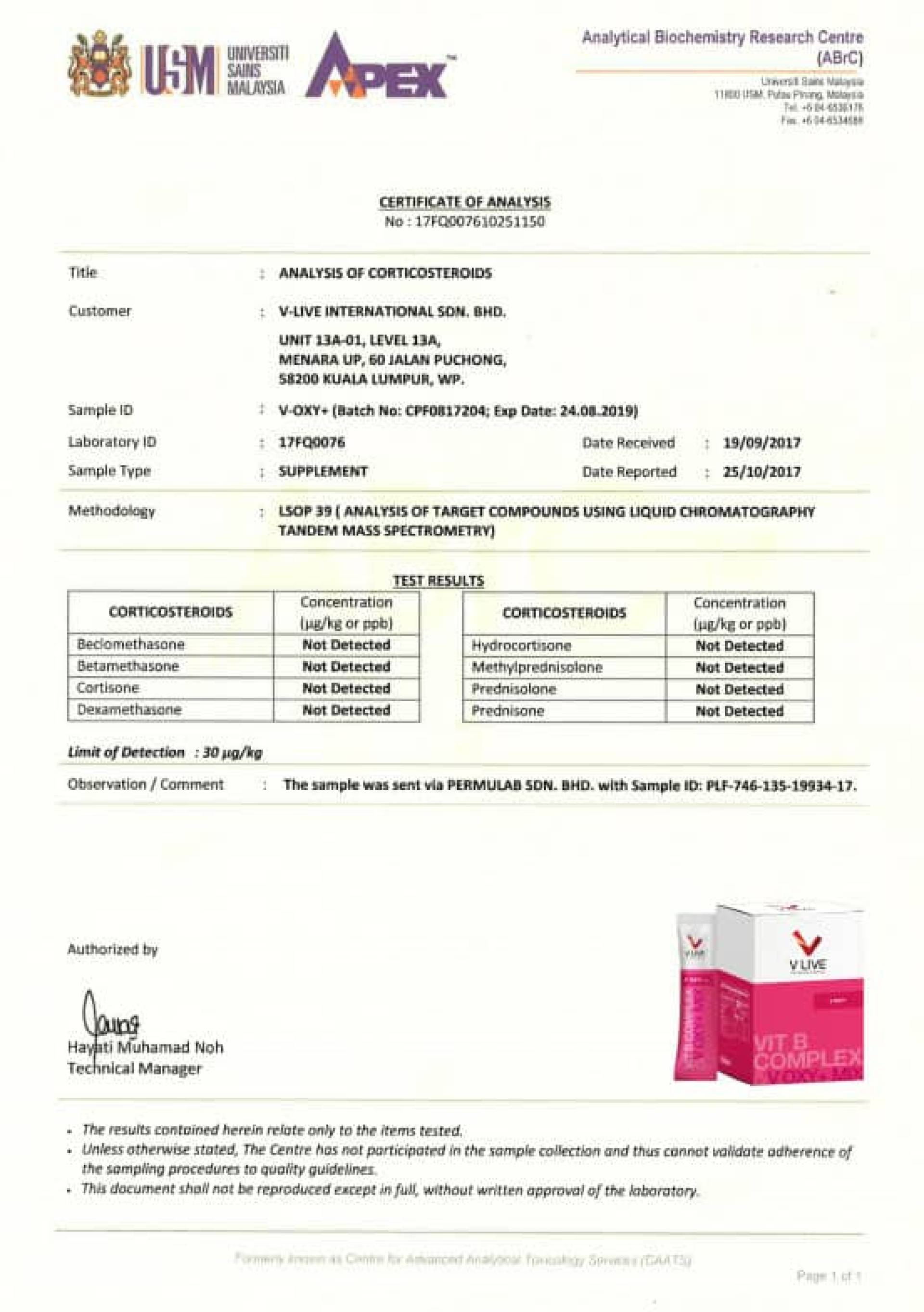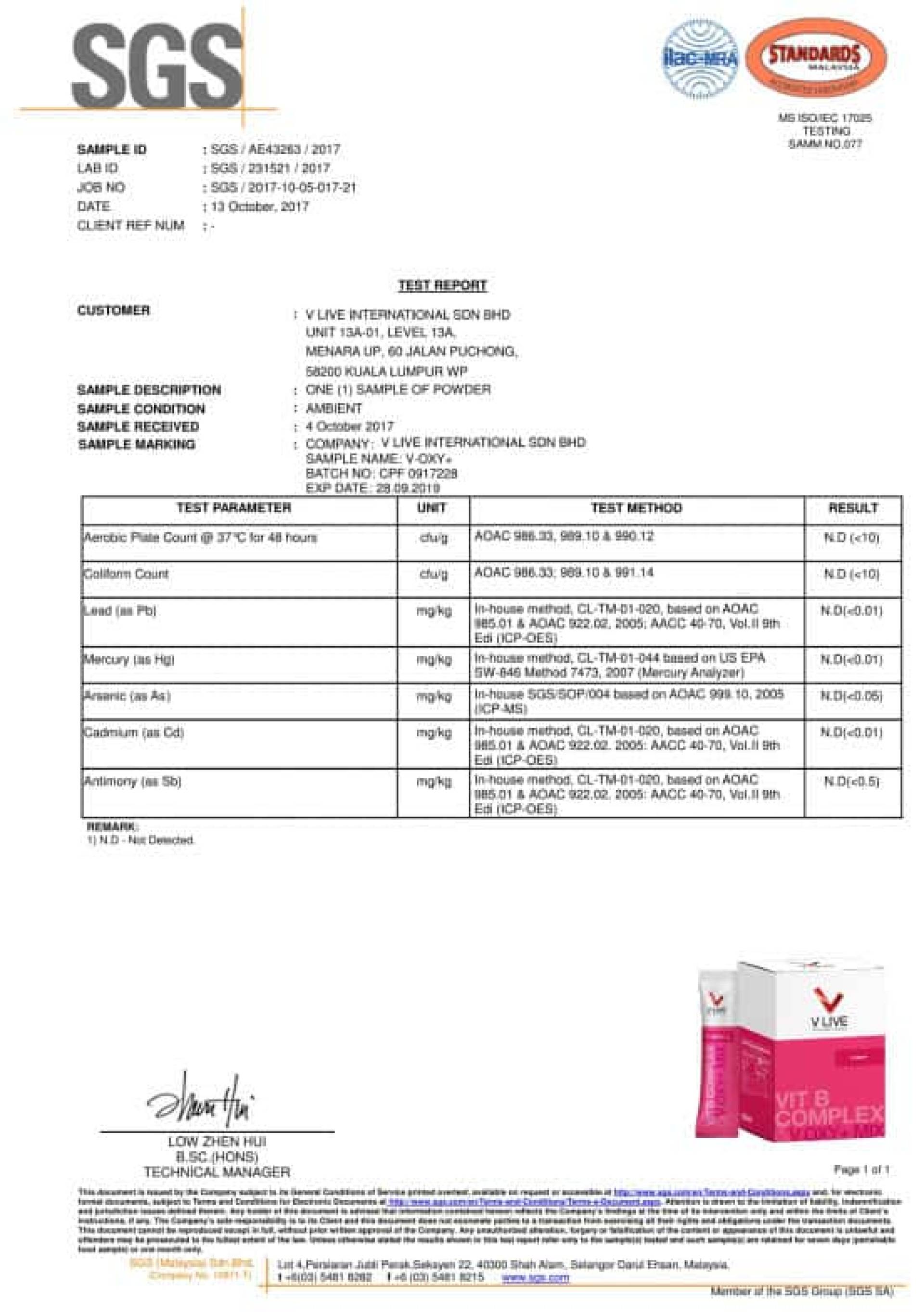 V Oxy+ is rich in coenzyme Q10, vitamin B complex, wild oats and vitamin C. Its special and active ingredients allow our body to absorb quickly and strengthen body functions, allowing our cells to vitalize, repair and regenerate. V Oxy+ has the function to combine all the nutrients. Combining with other V Live products will double up the effect. V Oxy+ is like a locomotive, leading all products to create a healthy body for us.